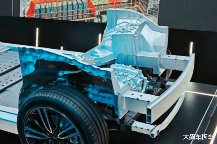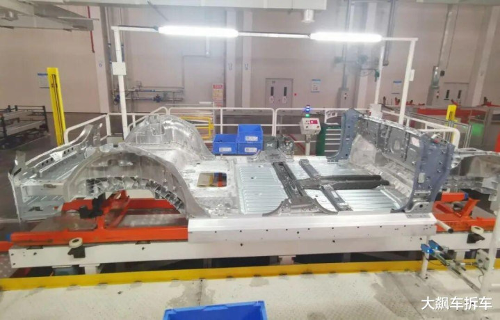 车身前后框架部分都是铝合金一体大压铸工艺。